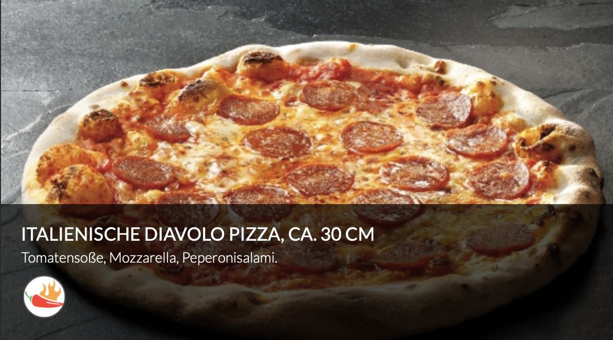 Italienische Pizza Diavolo mit ca. 30 cm.